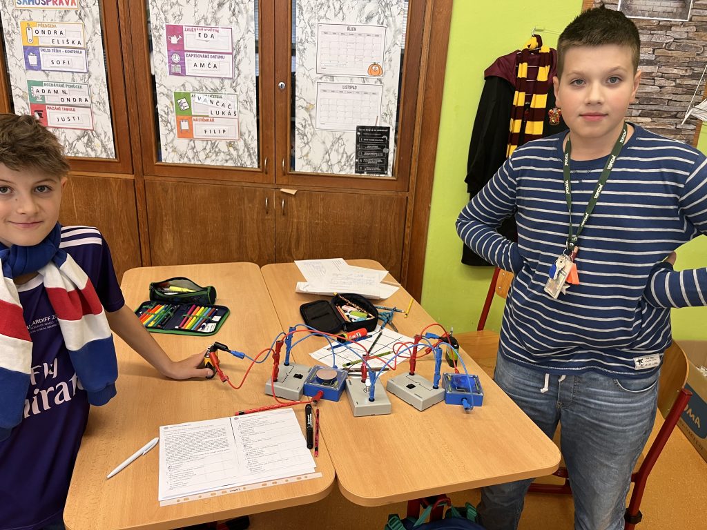 Součástí výuky byly praktické aktivity – žáci pracovali ve skupinách, počítali rodinné výdaje za energie, hledali různé druhy elektráren na mapě ČR nebo sestavovali jednoduché elektrické obvody se zdrojem a vypínačem. Projekt podpořil týmovou spolupráci, kritické myšlení a zájem o aktuální ekologická témata.