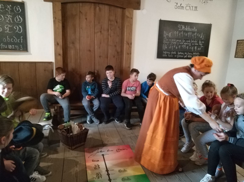 V pátek 6.října 2017 navštívili žáci pátých ročníků muzeum v Přerově. Muzejním programem „Hra na školu aneb Co zahalil čas do pláště pana Komenského“ nás prováděla postava manželky Jana Amose Komenského, Magdaléna Vizovská. Dozvěděli jsme se mnoho informací o životě a díle tohoto „Učitele národů“, který je významně spjat s naším městem. Navštívili jsme také nově vybudovaný památník J. A. Komenského, který stojí na místě tehdejšího kostela a školy Jednoty bratské. Exkurzi jsme zakončili procházkou po barokních památkách v našem městě.