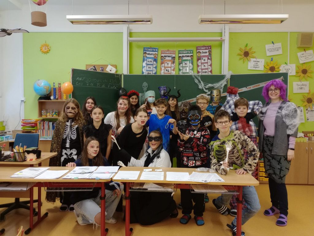 Poslední říjnový den jsme strávili ve společnosti halloweenských bytostí. Připravili jsme si kostýmy a dobré občerstvení. Formou skupinové práce jsme se pak dozvídali zajímavosti a historii tohoto keltského svátku.