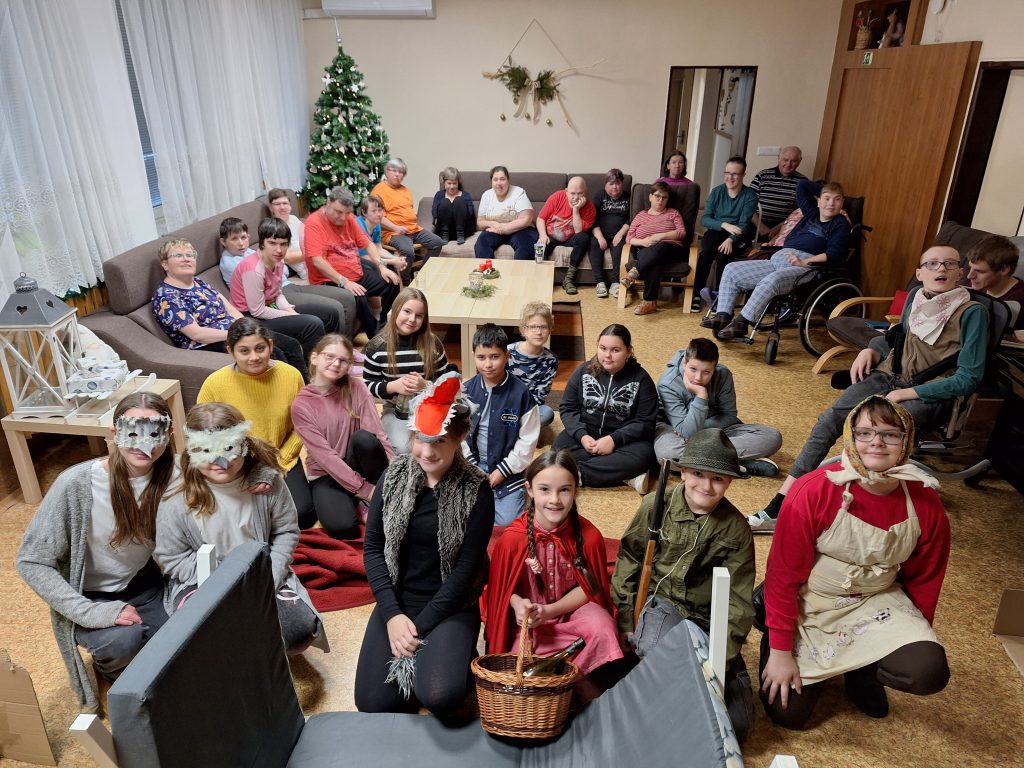 V pondělí 15.12. navštívili žáci naší třídy denní stacionář pro osoby s mentálním postižením, kde si pro jeho klienty připravili divadelní představení pohádky O Červené Karkulce. Malí herci se svých rolí zhostili s velkým nadšením a jednoduché kulisy i kostýmy pomohly vytvořit příjemnou a přátelskou atmosféru. Diváci sledovali známý příběh se zaujetím a odměnili účinkující upřímným potleskem.