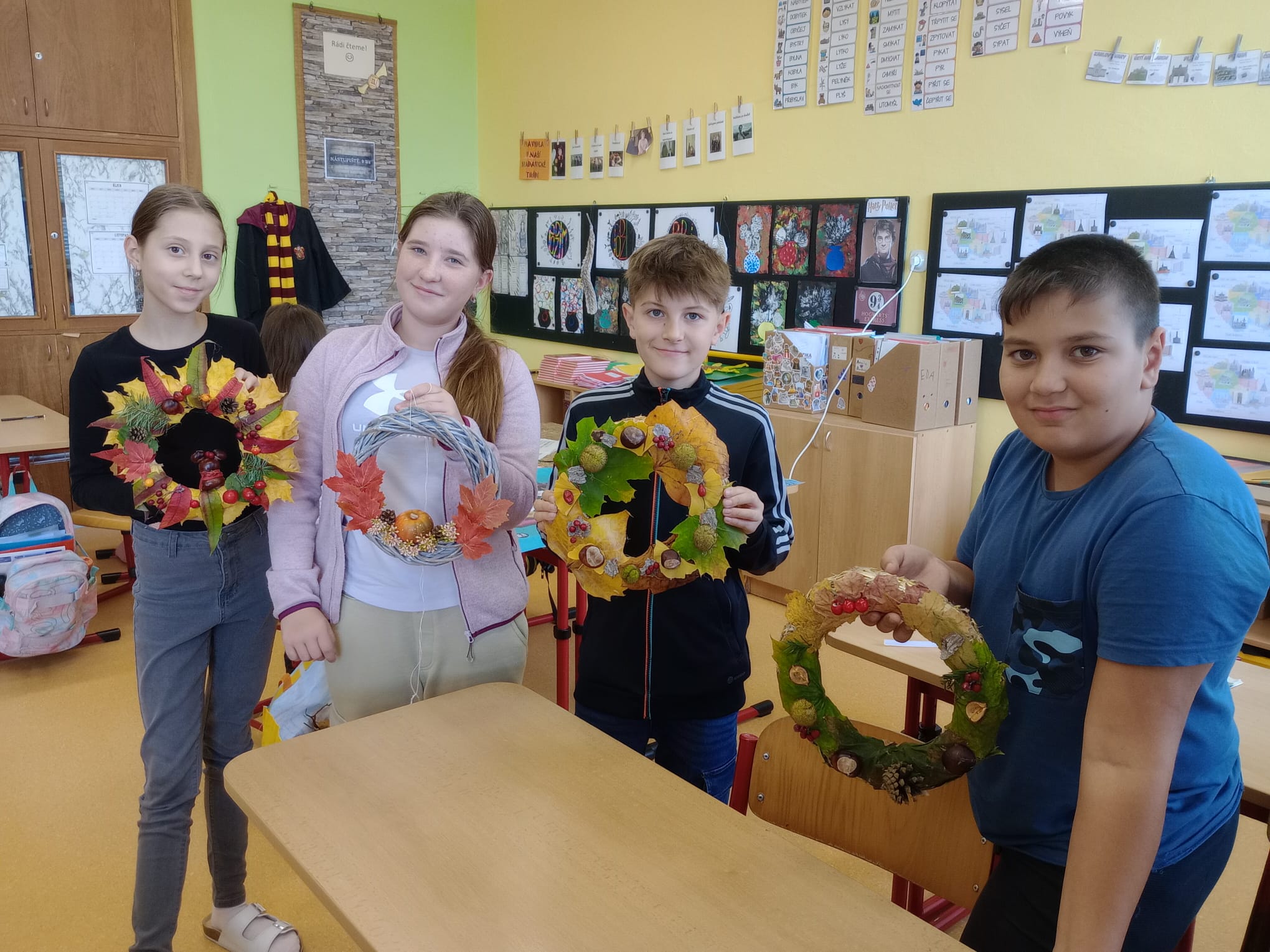 V rámci pracovních činností jsme se pustili do tvoření podzimních věnců. Použili jsme přírodniny nasbírané v okolí – barevné listy, šišky, plody, aj. Žáci pracovali s nadšením, projevili svou zručnost i kreativitu. Výsledné výtvory se velmi povedly a zdobí naši třídu i naše domovy.