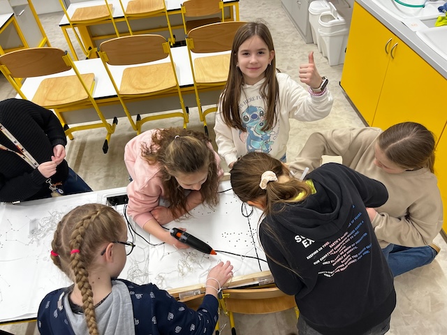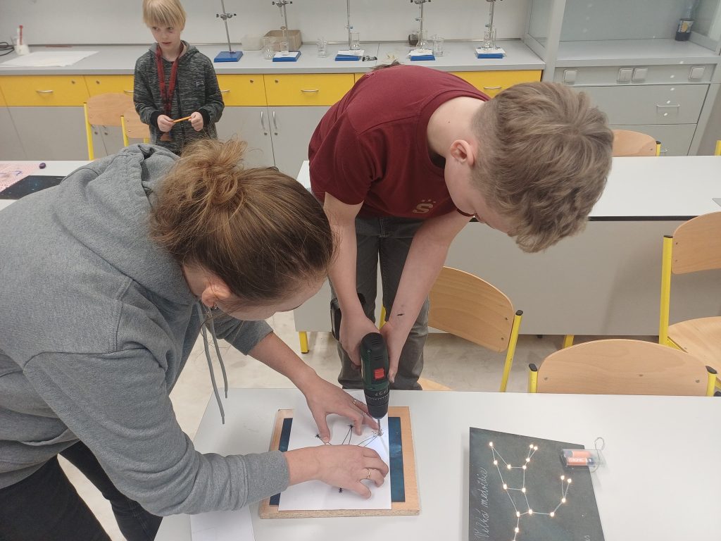 V lednové výzvě měli soutěžící za úkol sestavit vlastní model hvězdné oblohy nebo souhvězdí. Naši žáci si s tímto úkolem poradili skvěle – vytvořili model lednové oblohy, na kterém si mohou postupně zapínat a vypínat devět souhvězdí. Navíc si každý z nich navrhl a sestrojil obraz jednoho souhvězdí, a to buď podle skutečné předlohy, nebo vlastní fantazie.
