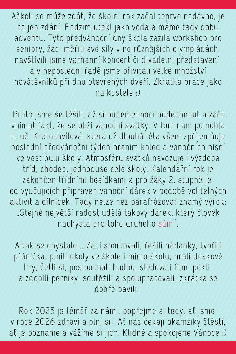 Poslední předvánoční den ve škole