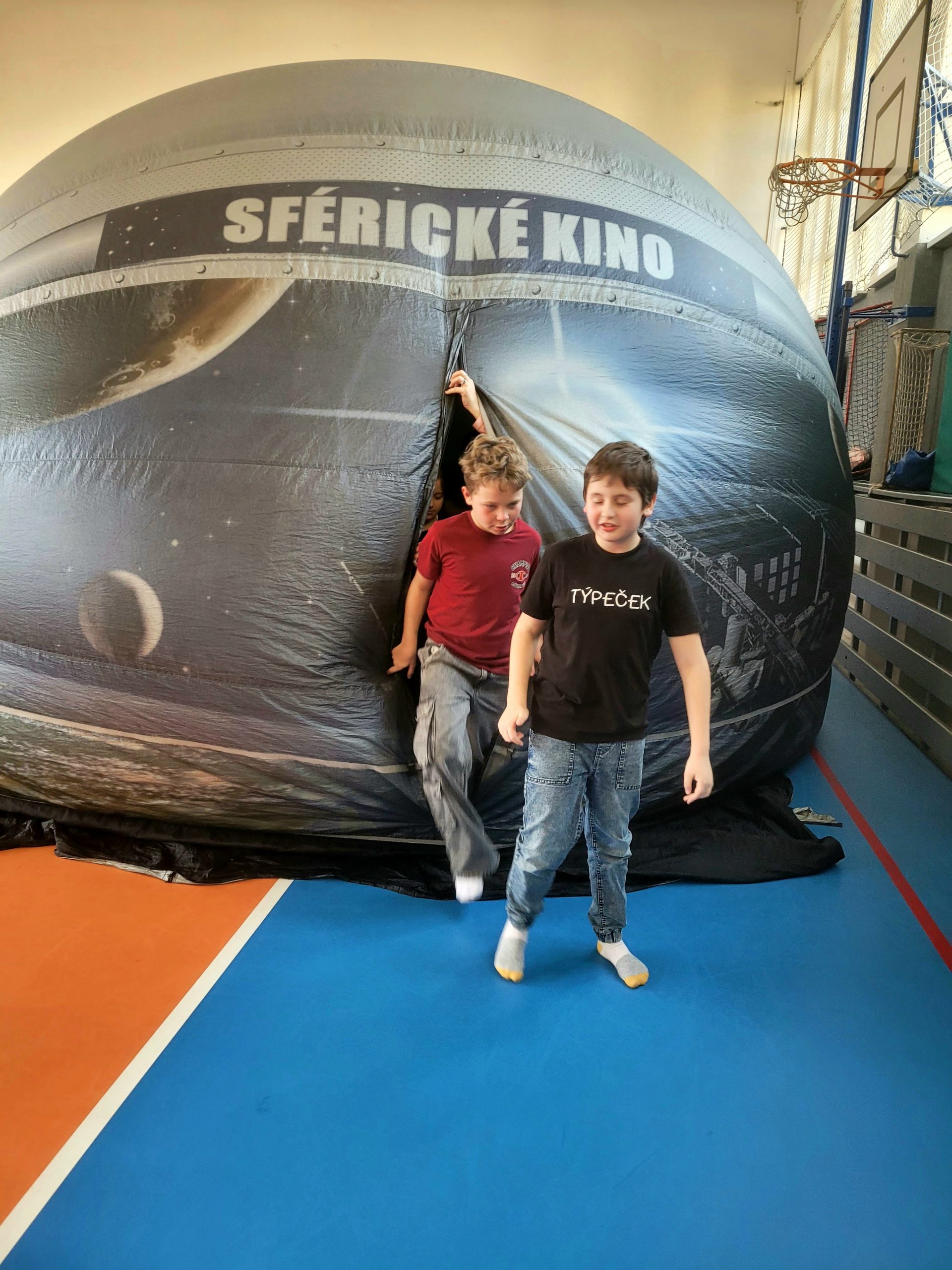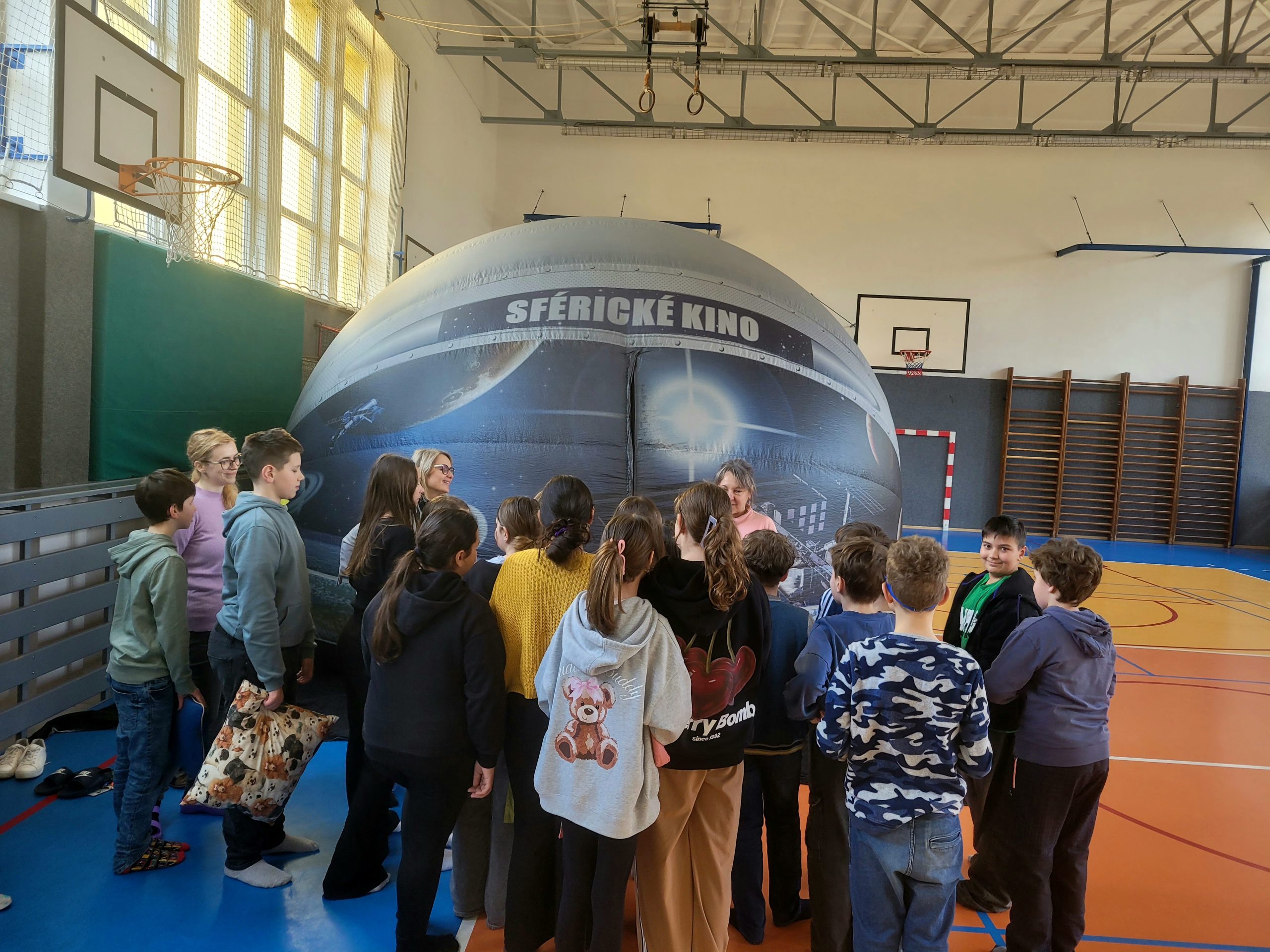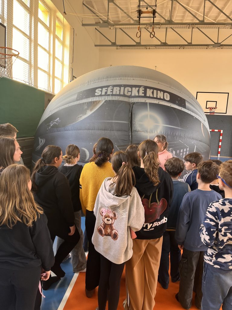 Naši žáci z prvního stupně zažili v těchto dnech opravdu nevšední dobrodružství. Do tělocvičny totiž dorazilo sférické kino – nafukovací stan, který se na chvíli proměnil v bránu do vesmíru, přírody i světa fantazie.