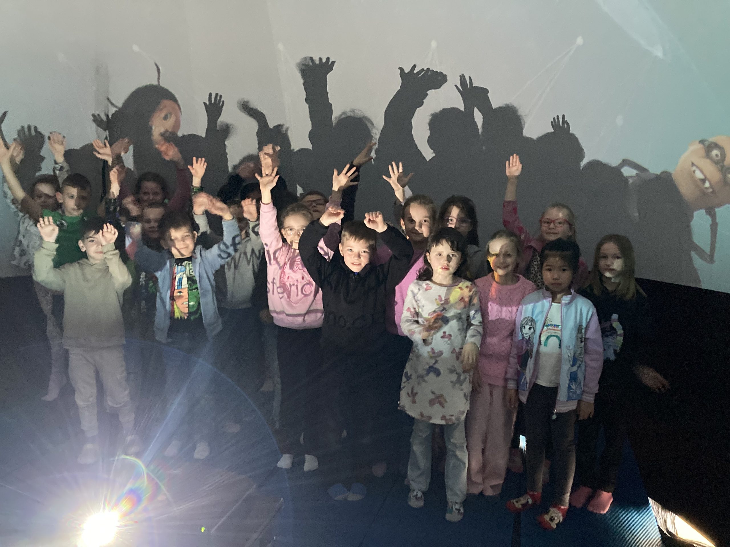 A přestože bylo sledování velmi pohodlné a příjemné, brzy jsme zjistili, že sférické kino má ještě jednu zvláštnost – žaludek se někdy choval trochu jako na centrifuze. Obrazy kolem nás se totiž pohybovaly tak realisticky, že se občas lehce zatočila hlava nejen dětem, ale i některým učitelům. Naštěstí to k dobrodružství tak trochu patří a po chvíli odpočinku bylo všechno zase v pořádku.