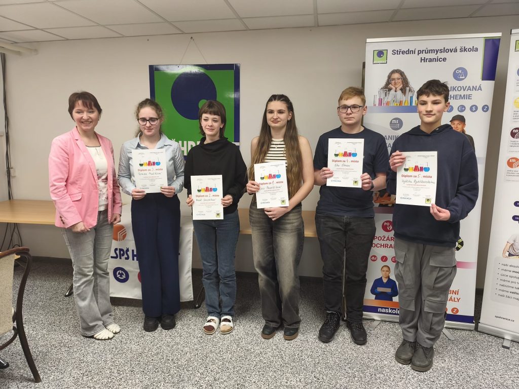 Naše žákyně Tereza Mužíková z 9. A skvěle zúročila zkušenosti získané v chemických kroužcích a předvedla třetí nejlepší výkon.